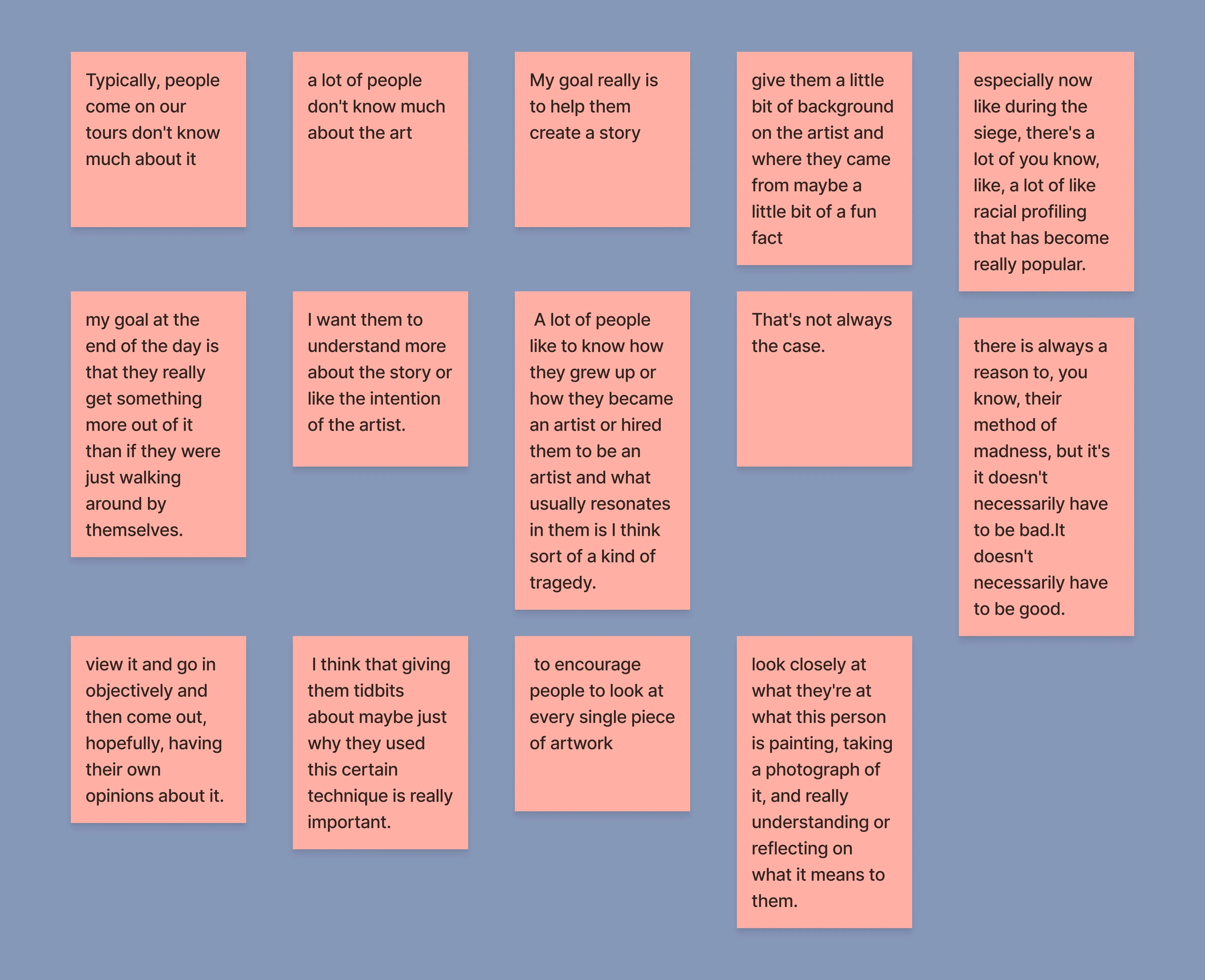 This project, based on the Google Ventures design sprint process, was prompted by Bitesize UX with the challenge of enhancing the art viewing experience in museums or galleries.