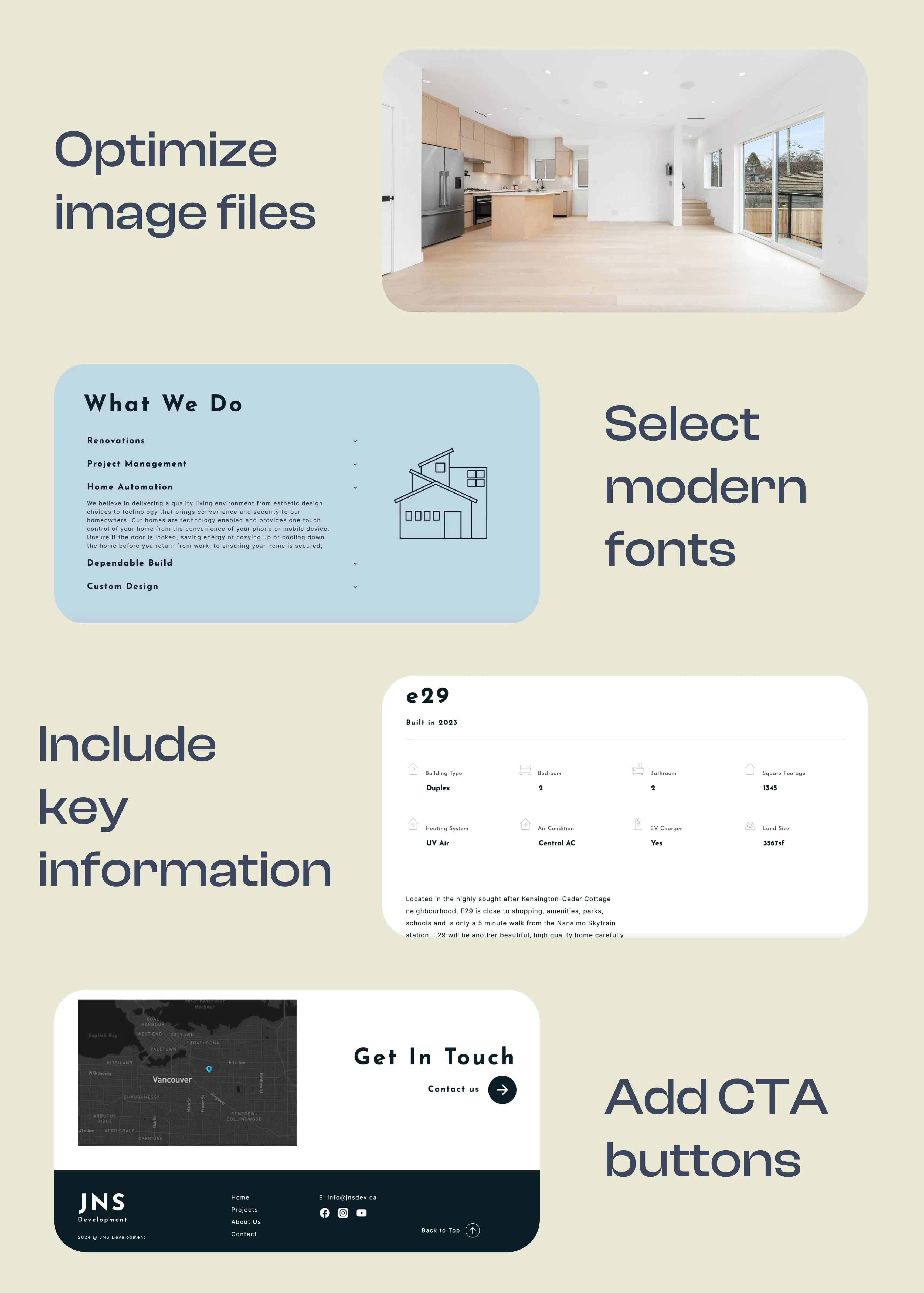 Despite establishing a strong presence in Vancouver through word-of-mouth, JNS recognizes the need to enhance its online presence. With the current website lacking user engagement and local traffic, there's a demand to showcase the company's work through engaging digital experiences.